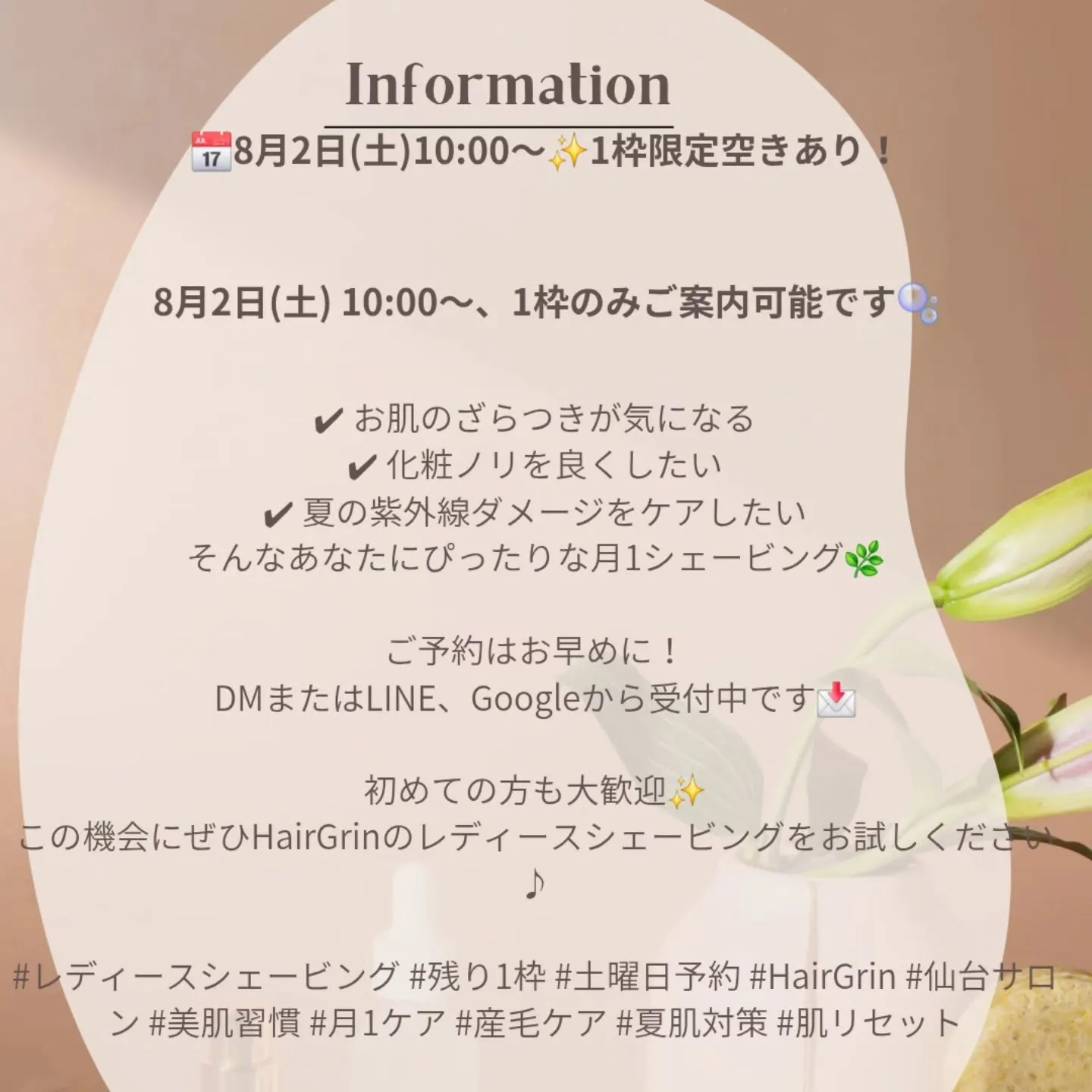 #レディースシェービング #シェービング #お顔そり #美容 #予約空き #当日予約OK
